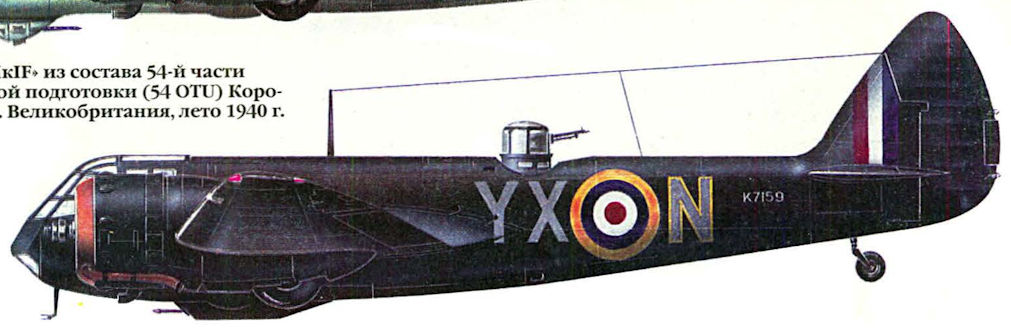 Регистрационный номер: K7159 "Бленхейм Mk IF" из состава 54-й части учебно-боевой подготовки (54 ОТЦ) Королевских ВВС. Великобритания, лето 1940 г.