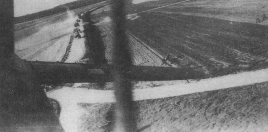 Опасаясь грозных "Мессершмиттов", экипажи часто "работали" по немецким колоннам с малых высот, засыпая их дождем мелких бомб. На приведенном снимке хорошо видны повозки, несколько бронемашин и разбегающиеся солдаты. Бельгия, 10-12 мая 1940 г.