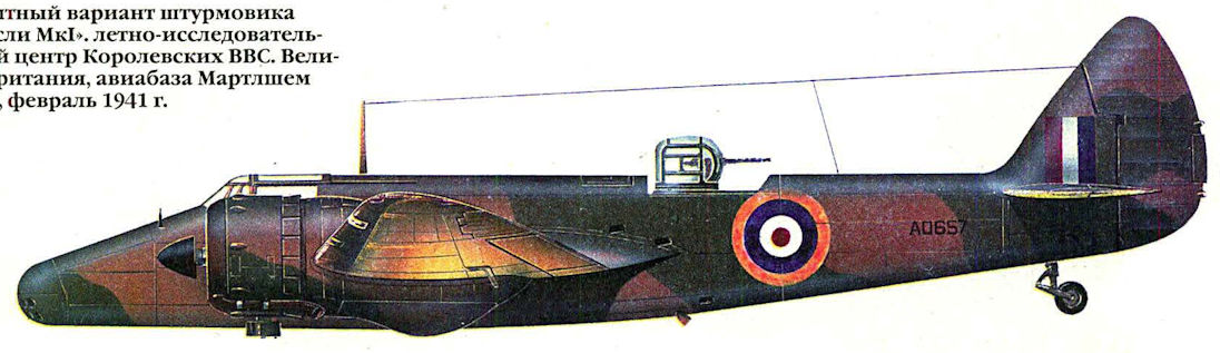 Регистрационный номер: AD657 Опытный вариант штурмовика "Бисли Mk I", летно-исследовательский центр Королевских ВВС. Великобритания, авиабаза Мартлшем Хис, февраль 1941 г.