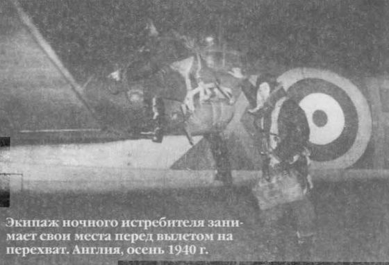 Экипаж ночного истребителя занимает свои места перед вылетом на перехват. Англия, осень 1940 г.