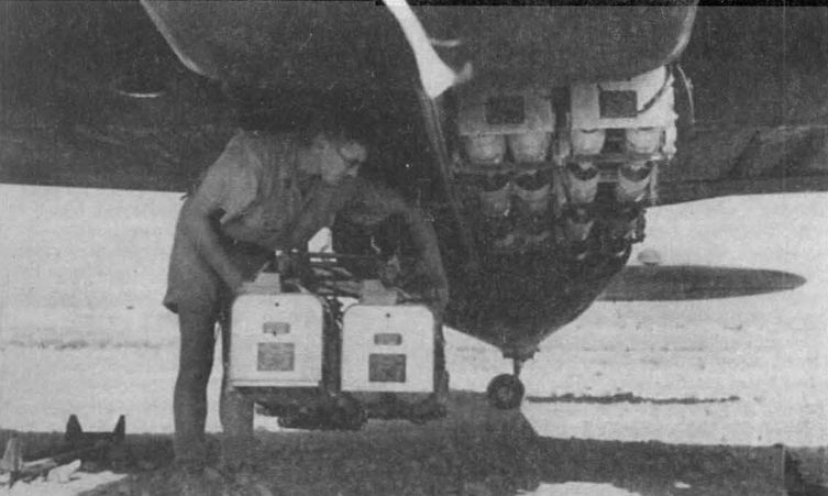 Подвеска в бомбоотсек «Бленхейма» контейнеров с 20-фунтовыми бомбами. Применение этих малокалиберных "гостинцев" позволило сжечь на ливийских аэродромах «все, что могло гореть».