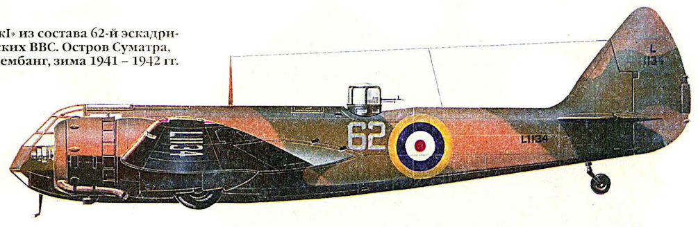 Регистрационный номер: L1134 "Бленхейм Mk I" из состава 62-й эскадрильи Королевских ВВС. Остров Суматра, авиабаза Палембанг, зима 1941 - 1942 гг.