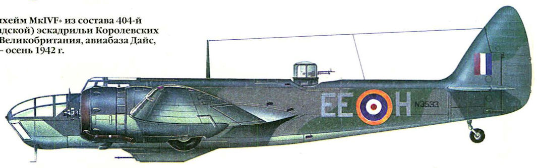 Регистрационный номер: N3533 "Бленхейм Mk IVF" из состава 404-й (канадской) эскадрильи Королевских ВВС. Великобритания, авиабаза Дайс, лето-осень 1942 г.
