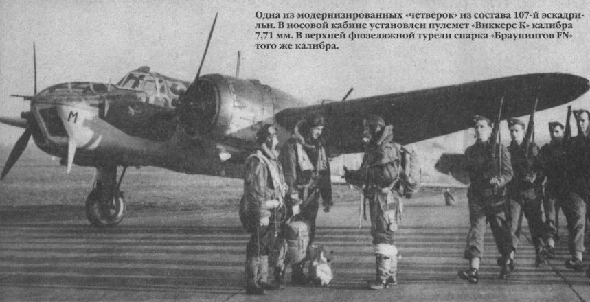 Одна из модернизированных "четверок" из состава 107-й эскадрильи. В носовой кабине установлен пулемет «Виккерс К» калибра 7,71 мм. В верхней фюзеляжной турели спарка "Браунингов FN" того же калибра.