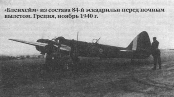 "Бленхейм" из состава 84-й эскадрильи перед ночным вылетом. Греция, ноябрь 1940г.