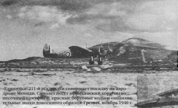 Регистрационный номер: L6679 "Бленхейм Mk I" из состава 211-й эскадрильи Королевских ВВС. Греция, аэродром Мениди, ноябрь 1940 г.