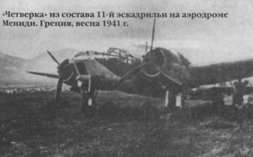 "Четверка" из состава 11-й эскадрильи на аэродроме Мениди. Греция, весна 1941г.