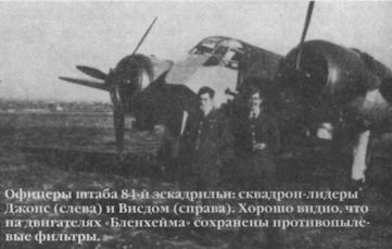 Офицеры штаба 84-й эскадрильи: сквадрон-лидеры Джонс (слева) и Висдом (справа). Хорошо видно, что на двигателях "Бленхейма" сохранены противопылевые фильтры.