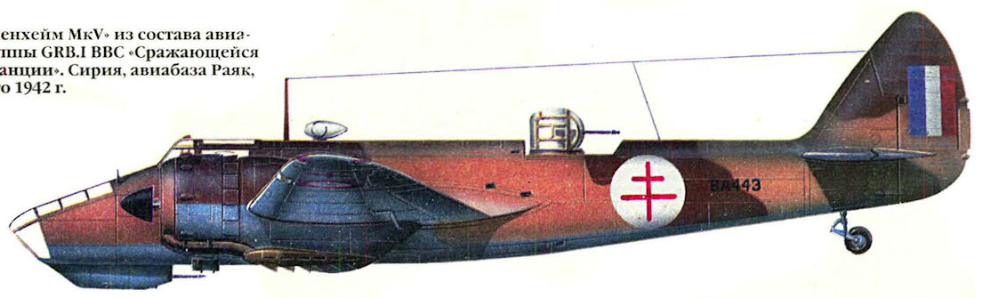 Регистрационный номер: BA443 "Бленхейм Mk V" из состава авиагруппы GRB.I ВВС "Сражающейся Франции". Сирия, авиабаза Раяк, лето 1942 г.