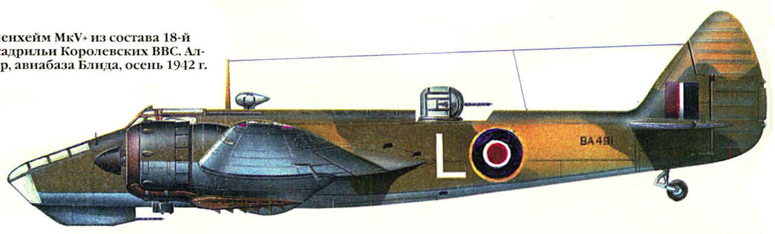 Регистрационный номер: BA491 "Бленхейм Mk V" из состава 18-й эскадрильи Королевских ВВС. Алжир, авиабаза Блида, осень 1942 г.