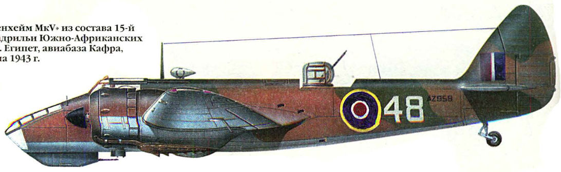Регистрационный номер: AZ958 "Бленхейм Mk V" из состава 15-й эскадрильи Южно-Африканских ВВС. Египет, авиабаза Кафра, весна 1943 г.