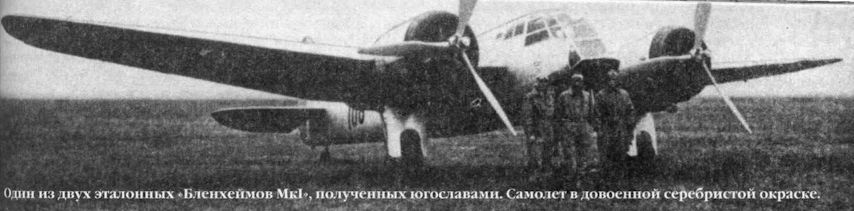 Один из двух эталонных "Бленхеймов Mk I", полученных югославами. Самолет в довоенной серебристой окраске.
