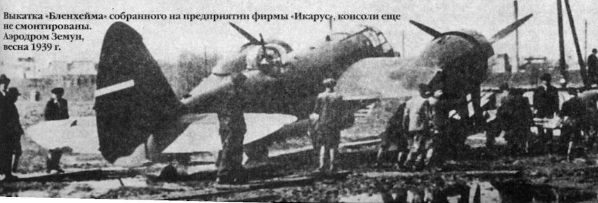 Выкатка "Бленхейма" собранного на предприятии фирмы "Икарус", консоли еще не смонтированы. Аэродром Земун, весна 1939г.
