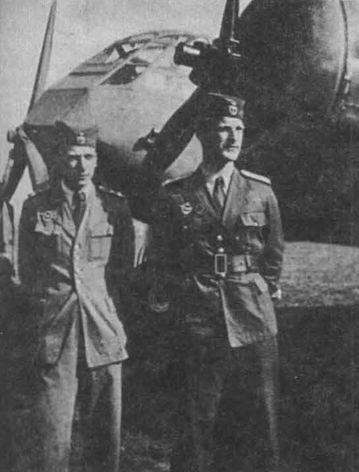 Для многих экипажей "Бленхеймов" весенняя кампания 1941 г. стала последней. На фото: штурман 204-й эскадрильи 1-го бомбардировочного полка ВВС Югославии лейтенант Кинк (справа) у своего самолета. 7 апреля он погибнет вместе со своим экипажем при бомбежке колонны немецкой бронетехники в районе Крива Паланка.