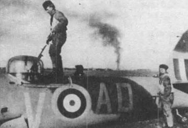 Вернувшийся с боевого вылета сержант Ян Блэйр позирует, сидя на крыле своего "Бленхейма". Пилоту явно есть от чего радоваться: близким разрывом зенитного снаряда сорвало створки бомбоотсека и, возможно, разорвись он на метр или два ближе, о возвращении на базу пришлось бы забыть... Под капотами двигателей видны противопылевые фильтры "Воке", которые аэродромная братия называла между собой "примусами".