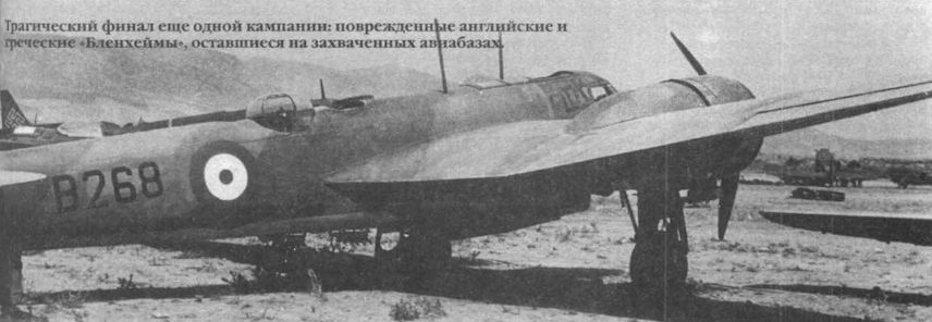 Трагический финал еще одной кампании: поврежденные английские и греческие "Бленхеймы", оставшиеся на захваченных авиабазах.