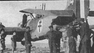 Первые потери 84-й эскадрильи на новом ТВД: одним удавалось и дотягивать на поврежденных машинах до своих аэродромов, других ждала вынужденная посадка на территории контролируемой итальянцами (на фото: сбитый "Фиатами" в районе порта Валоны самолет из состава 30-й эскадрильи, выполнявший 26 декабря 1940 г. разведывательный вылет в составе звена).