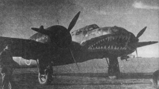 Ночной "охотник" из состава 89-й истребительной эскадрильи. Грозная акулья пасть уже нарисована, но вооружение и РЛС еще не установлены. Египет, весна 1942 г.