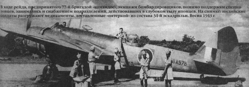 Регистрационный номер: BA576 [2] В ходе рейда, предпринятого 77-й бригадой «командос», экипажи бомбардировщиков, помимо поддержки спецназовцев, занимались и снабжением подразделений, действовавших в глубоком тылу японцев. На снимке: индийские солдаты разгружают медикаменты, доставленные «пятеркой» из состава 34-й эскадрильи. Весна 1943 г