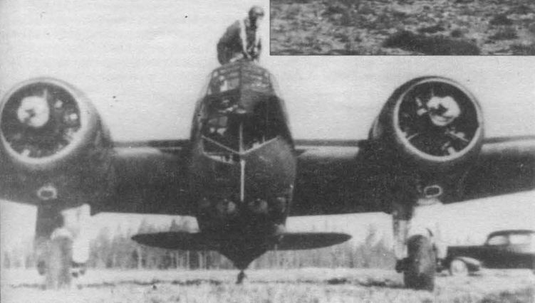 "Бленхейм", подбитый в воздушном бою и совершивший вынужденную посадку в сомалийской пустыне.