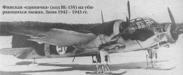 Регистрационный номер: BL-135 Финская "единичка" (код BL-135) на убирающихся лыжах. Зима 1942-1943 гг.