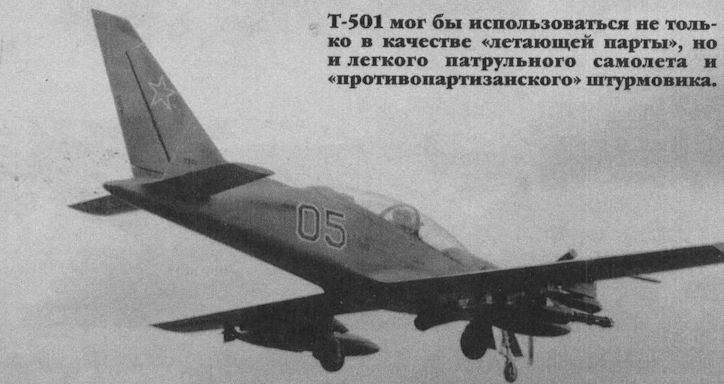Т-501 мог бы использоваться не только в качестве «летающей парты», но и легкого патрульного самолета и «противопартизанского» штурмовика.