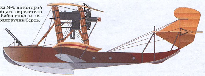 Летающая лодка М-9, на которой к белогвардейцам перелетели поручик П.Ф.Бабаненко и наблюдатель - подпоручик Серов.