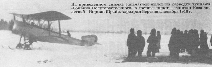 На приведенном снимке запечатлен вылет на разведку экипажа «Сопвича Полуторастоечного» в составе: пилот - капитан Козаков, летнаб - Норман Шрайв.