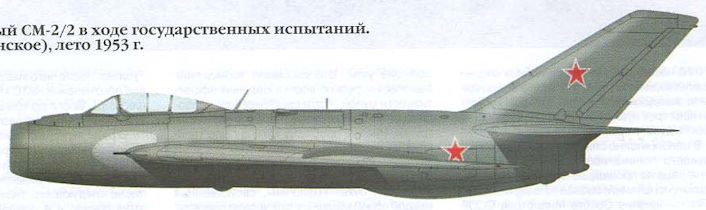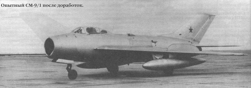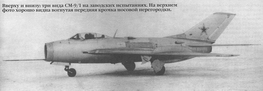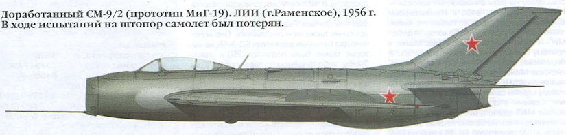 Доработанный СМ-9/2 (прототип МиГ-19). ЛИИ (г.Раменское), 1956 г. В ходе испытаний на штопор самолет был потерян.