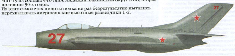 МиГ-19 из состава 9-го гиап. Андижан, Бакинский округ ПВО, вторая половина 50-х годов. На этих самолетах пилоты полка не раз безрезультатно пытались перехватывать американские высотные разведчики U-2.