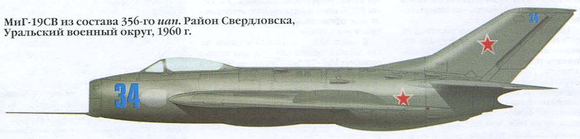 МиГ-19СВ из состава 356-го нап. Район Свердловска, Уральский военный округ, 1960 г.