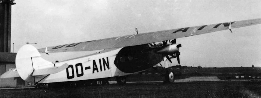 Регистрационный номер: OO-AIO A SABCA-built F.VIIb/3m of SABENA at Antwerp in 1931. OO-AIO shows well the thickness of the cantilever wooden wing, two feet deep at the centre section. Engines of the SABCA-built aircraft were the 230 hp Gnome Rhone-built Bristol 5-cylinder Titans.