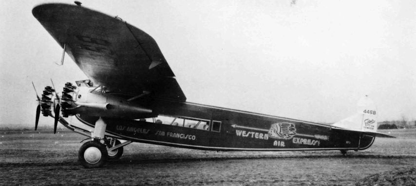 Регистрационный номер: NC4458 Atlantic's F.VIIb/3m development was the F-10 with increased wingspan of 79ft 2in, larger 10-passenger cabin, internal control runs, taller rudder and 420 hp 9-cyl Pratt & Whitney R-1340 engines with 3 blade ground-adjustable pitch propellers. Shown here is NC4458 of Western Air Express marked "Fokker USA F-Ten Trimotor".