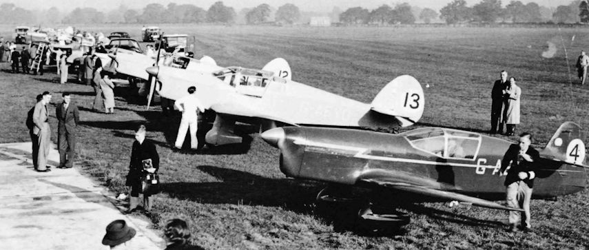 Регистрационный номер: G-AEKL, G-AEYD, G-AFAU Vega Gulls at Hatfield 10.9.37 for the King's Cup. No.13 is G-AEYD c/n K.60 and No.12 is G-AFAU c/n K.69. The eventual winner was No.4, Mew Gull G-AEKL c/n E.21, flown by Charles Gardner and formerly "Miss Liverpool" rebuilt after the accident in which Tom Campbell Black was killed. Gardner also won in 1936, in Vega Gull G-AEKE.