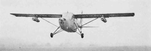 Регистрационный номер: G-AOFU [7] Edgar Percival in prototype G-AOFU is taking off at full throttle with elevator neutral, but the tail is already rising by itself. Features on the prototype only were the two clamshell rear doors closing along a straight line at the rear and the elevator mass balance weights on arms which can be seen projecting forward under the tailplane.