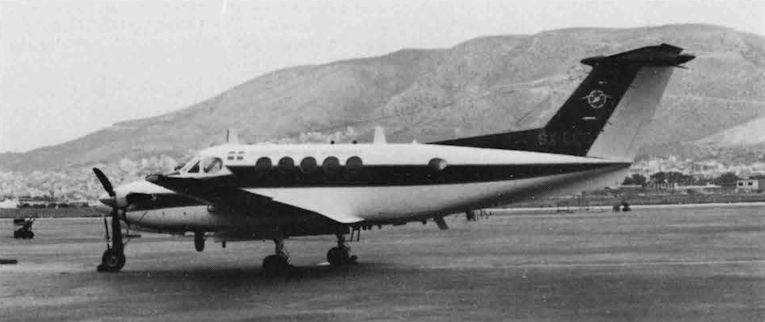 Регистрационный номер: SX-ECG Flagship of the Ypiresia Politikis Aeroporias (Hellenic Civil Aviation Authority) is this Beech 200 Super King Air SX-ECG, also shown at Athens in June 1988.