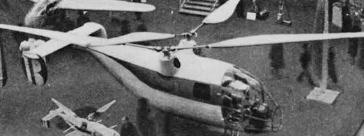 The SNCAC NC2001 Abeille helicopter had some similarities to the Breguet G11E with vertical and horizontal tail surfaces but its twin 2-blade rotors were mounted on separate pylons and inter-meshed. It had a cleanly streamlined fuselage and the undercarriage was retractable. The engine was the 12-cyl inverted vee in-line Renault 12S.00 giving 600 hp at 3300 rpm for take-off. It was probably influenced by the SE3000 but was no more successful. The example displayed was unmarked.