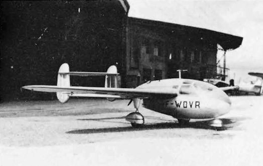 In the foreground is the prototype Guerchais-Roche T39 three-seat wood and fabric cabin monoplane tourer with a 175 hp 7-cyl Mathis G7R radial engine. It flew the following year as F-WCEG/F-BCEG.