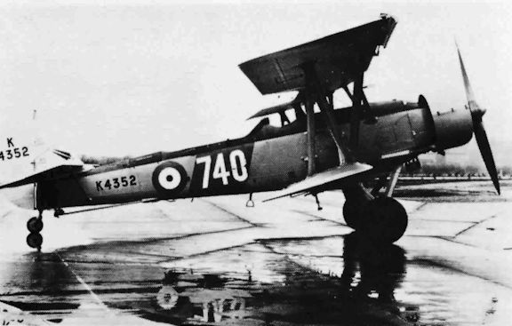 Регистрационный номер: K4352 Shark I K4352 of No. 820 Squadron with its Fleet No. 740 on Courageous's blue band