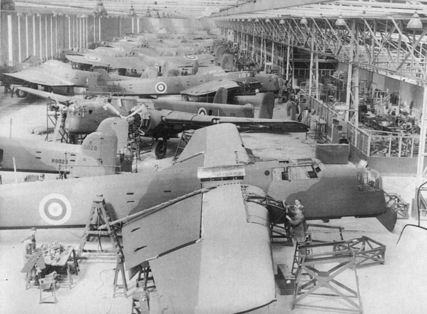 Armstrong Whitworth Whitley bombers in final assembly. When Peter Masefield took his American VIPs on a visit to the company's factory at Baginton, Coventry, production was in the throes of switching from Tiger engined Mk IIIs to Merlin powered Mk IVs.