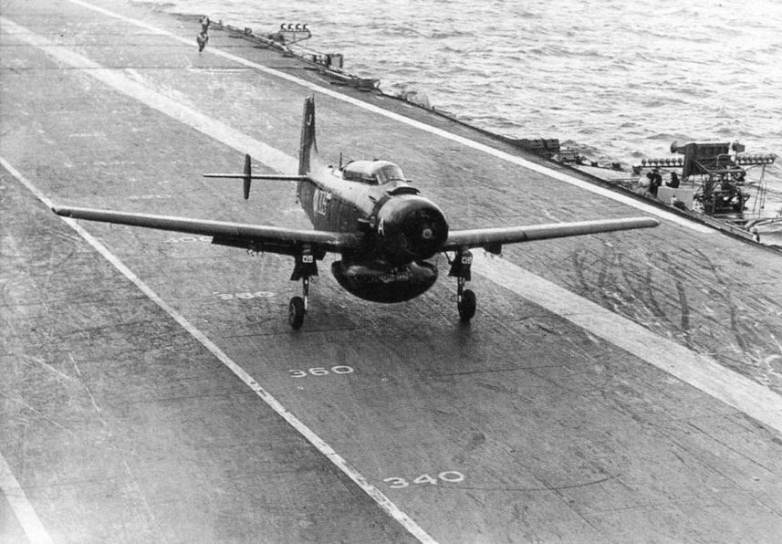 In October 1958 the author was given the opportunity to fly off HMS Victorious in the back seat of a Royal Navy Douglas AD-4W AEW Skyraider. Illustrated here is a Skyraider of No 849 Sgn with its tail up, well down the deck of HMS Eagle in 1955.