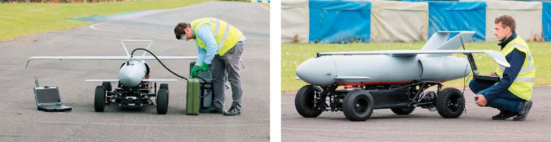 БПЛА «Дарт 250» готовится к взлету со стартом с разгонной тележки