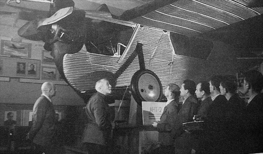 Самолет АНТ-2 в экспозиции Центрального аэрохиммузея им. М.В. Фрунзе (ныне Центральный Дом авиации и космонавтики им. М.В. Фрунзе), 1927 г. Экскурсию ведет А.И. Егоров