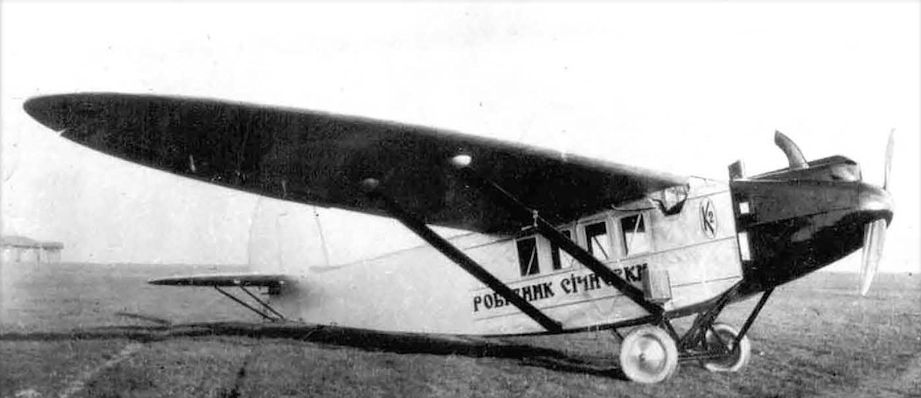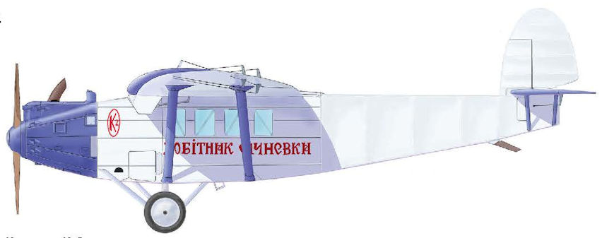 Пассажирский самолет К-2 "Робiтник Сiчневки". Харьков, май 1927г. Отличался от модели К-1 отсутствием деревянных элементов в конструкции и оснащался более мощным двигателем.