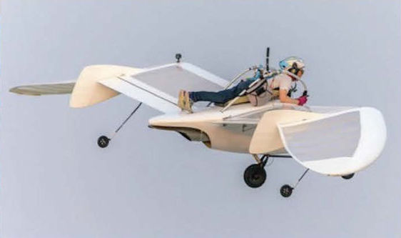 Концепт-арт самолета-трансформера NASA «Puffin» в полетном положении. Так как взлет и посадка осуществляется вертикально с опорой на четыре раскрывающихся киля, а пилот лежит на животе, то при такой компоновке нет необходимости обеспечивать поворот кресла пилота