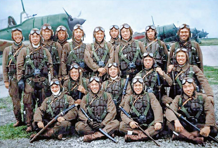 Лётчики Великой Маньчжурской империи Маньчжоу-Го (образована под влиянием японской военной администрации на территории Маньчжурии) на фоне истребителя Ки-27