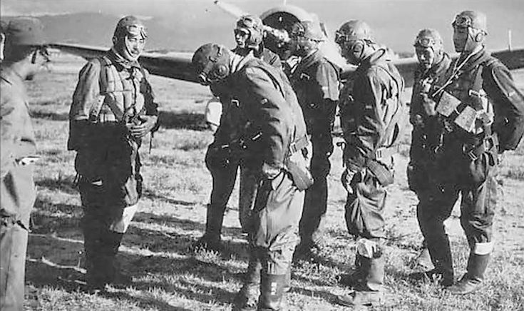 Японские летчики на фоне самолетов Ки-51