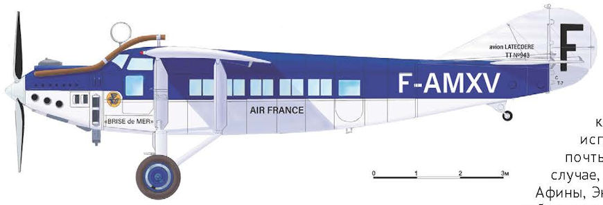 Регистрационный номер: F-AMXV Латекоер 28 уже в окраске авиакомпании «Эйр Франс». 1933 - 1934 гг. (к тому времени компания «Аэропосталь» слилась с «Эйр Франс»). На таком самолете Сент-Экзюпери выполнил несколько рейсов над Атлантикой из Сенегала в Бразилию