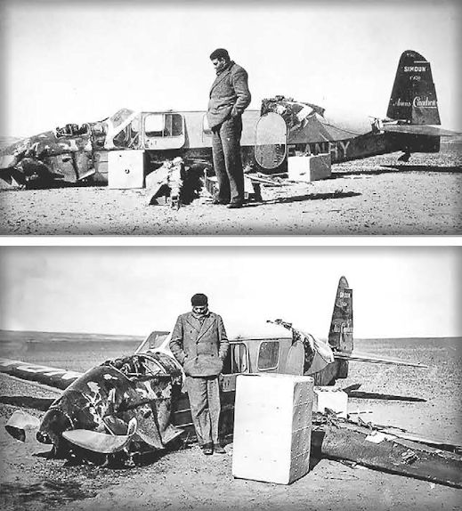 Регистрационный номер: F-ANRY [4] Сент-Экзюпери у обломков своего «Кодрона»