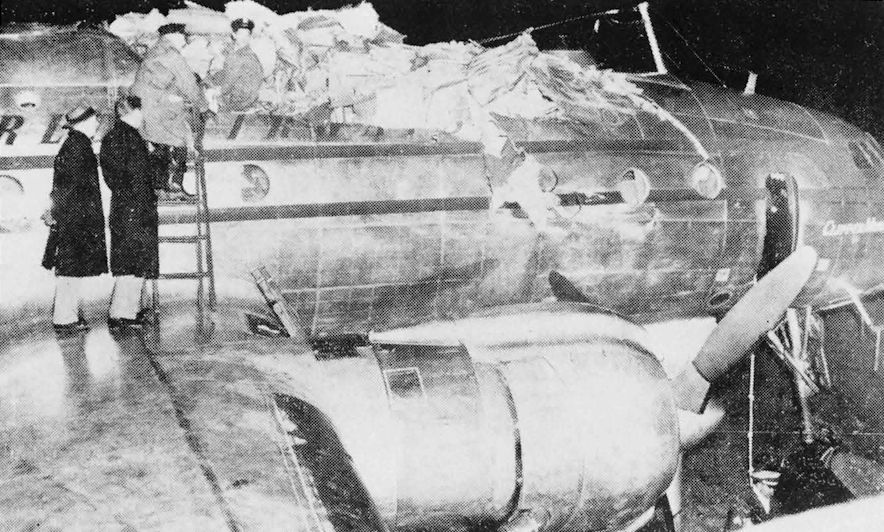 Регистрационный номер: N86530 The fuselage of Pan Am Constellation N86530 after the impact with a Cessna 140 on 30.1.49.